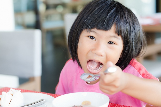 8. Anak merasa lelah dan memainkan makanannya. Itu normal, Bunda. Bantu ia menghabiskan makanannya dengan menyuapinya.