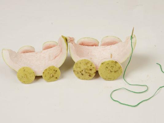Pasang benang wol atau tali tipis untuk menarik mobil-mobilan