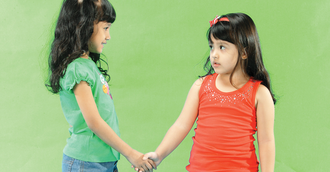 - Ajari si kecil etika berkenalan, misalnya menyodorkan tangan kanan kepada calon teman terlebih dahulu, serta tidak memaksakan anak lain bila menolak berkenalan.