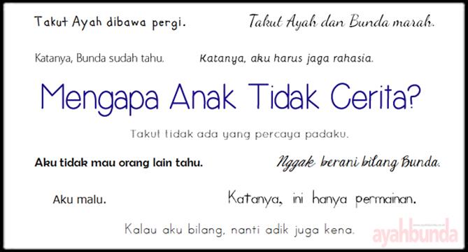 Padahal, orangtua seharusnya menjadi pihak pertama yang mengajarkan tentang seks. Ketika anak dibekali edukasi seks yang benar dari orangtua, umumnya anak lebih bisa terhindar dari kemungkinan menjadi korban kekerasan seksual. Ayo, hapus rasa jengah untuk berdiskusi mengenai seks pada anak-anak. Jelaskan pada mereka dengan bahasa sederhana dan mudah dimengerti.