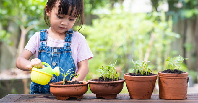 Jika anak sudah mulai bosan dengan aktivitas stimulasi di dalam ruangan, ajak ia berkebun, Bunda. Tak perlu khawatir kotor atau basah, aktivitas berkebun mulai dari menanam, menyirami, memberi pupuk dan memanen dapat menjadi stimulus yang berharga untuk si kecil.