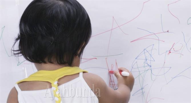 Balita usia 2-3 tahun, biasanya sedang senang mencorat-coret. Bila menemukan krayon, dimanapun dan kapanpun pasti digambarnya.