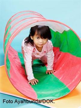- Bergerak berputar, berguling dan mainan yang dapat dinaiki, misalnya sepeda roda tiga, kuda poni kayu yang dikayuh.