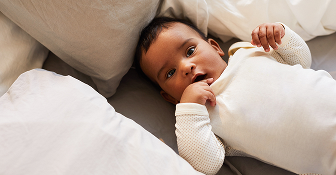 Lakukan: Cek popoknya, biasanya sudah penuh. Tidurkan bayi segera dan selama dia suka.