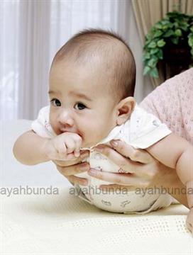 Sudah mulai bisa mengguling-gulingkan badannya dan bisa duduk dengan bertopang pada salah satu tangan |