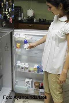 - Simpan ASI di cooler box atau kulkas, rekatkan wadah ASI dengan label tanggal ASI diperah dan nama Anda.