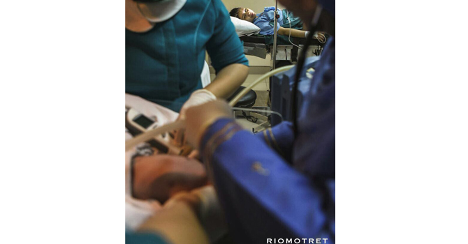 Putri Titian menyaksikan putra pertamanya yang sedang di rawat oleh tim dokter dengan tersenyum dan penuh harapan.