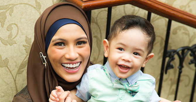 “Rendra sudah mulai lancar berjalan, jadi sekarang dia lagi senang berjalan-jalan di sekeliling rumah sambil mengeksplorasi rumah, seperti memencet-mencet tombol lampu atau naik-turun tangga. Untuk itu, saya selalu mengawasinya agar ia tidak terantuk benda-benda di rumah yang bisa membahayakannya.”