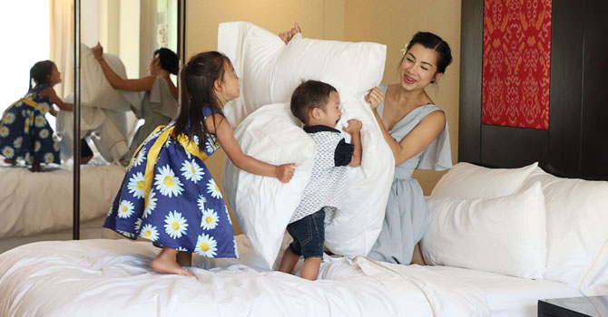 "Kami bertiga suka bermain dan beraktivitas bersama, baik di dalam maupun di luar ruangan. Kebetulan di rumah, kami punya sudut favorit, yakni  playground. Ini bagus untuk melatih motorik mereka. Kiyomi dan Kenji suka bermain bersama dan kompak di manapun."