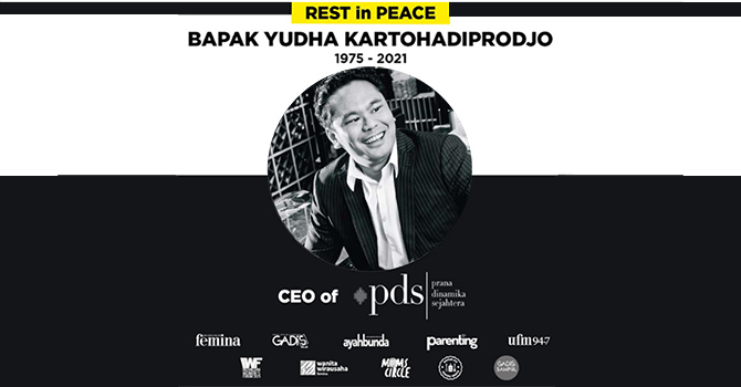 Bapak Yudha Kartohadiprodjo, Pemimpin Umum dan Penanggung Jawab PT Prana Dinamika Sejahtera, yang menutup usia di Jakarta pada 45 tahun akibat serangn jantung. Ayahbunda kehilangan pemimpin, kawan, keluarga, dan sosok ayah bagi kami dalam berkarya.