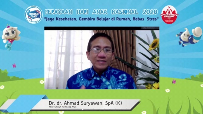 "Kondisi kesehatan, psikis dan sosial anak sangat rentan di tengah situasi saat ini. Menjadi sangat penting bagi orang tua untuk menjaga kesehatan semua anggota keluarga dengan menjaga kesehatan dan membangun sistem imun tubuh yang kuat dengan mengonsumsi gizi seimbang termasuk beragam makanan sesuai dengan pedoman 'Isi Piringku', termasuk susu yang merupakan salah satu sumber protein hewani terbaik yang mudah diserap tubuh, demi membantu terpenuhinya kebutuhan gizi harian sang buah hati,” kata dokter yang akrab dipanggil Wawan, dalam acara diskusi daring Frisian Flag Indonesia, Selasa 29 Juli 2020.