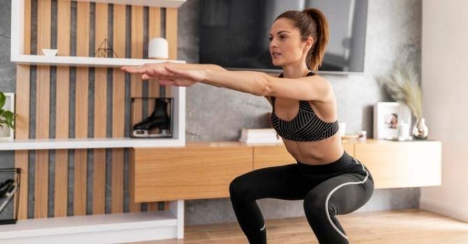Setelah berbuka puasa ringan, pastikan Anda telah mengonsumsi cukup cairan dan kemudian melakukan latihan kardio ringan. Anda dapat mengikuti video zumba atau aerobik atau berjalan cepat 20 menit. Beberapa latihan penguatan seperti squat, lunges dan sit-up juga bisa dilakukan.