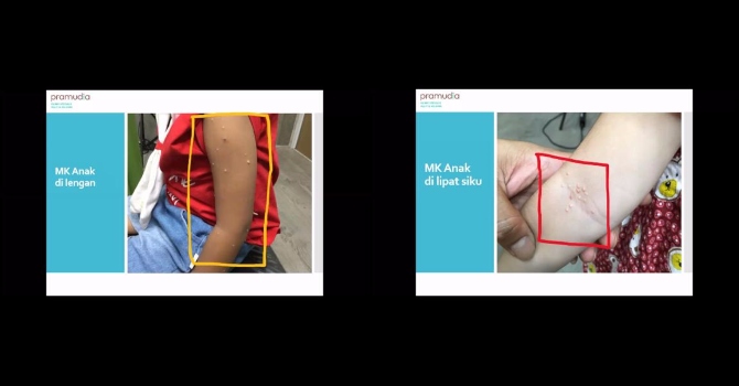 “Berdasarkan kasus MK yang ditemukan di Klinik Pramudia selama 2019 -2020, ditemukan rata-rata sebanyak 2-4 kasus per bulan, pada anak maupun dewasa yang beberapa diantaranya ditemukan pada penderita HIV. Penderita MK anak di Klinik Pramudia berusia 2-10 tahun dan usia 20-60 tahun pada kasus dewasa,” jelasnya.