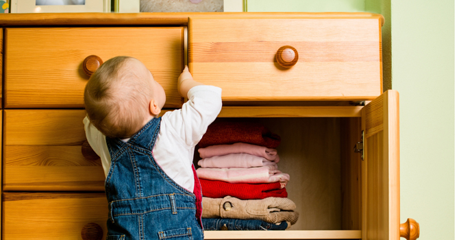 - Mulailah menyortir barang dari sudut dekat pintu lalu mulai dari sisi kiri dan bergerak searah jarum jam. Pastikan memeriksa seluruh sudut, seperti laci lemari dan bawah ranjang. Masukkan sampah yang  berserakan, seperti kertas coretan atau krayon yang patah ke dalam kotak sampah yang sudah Anda buat.