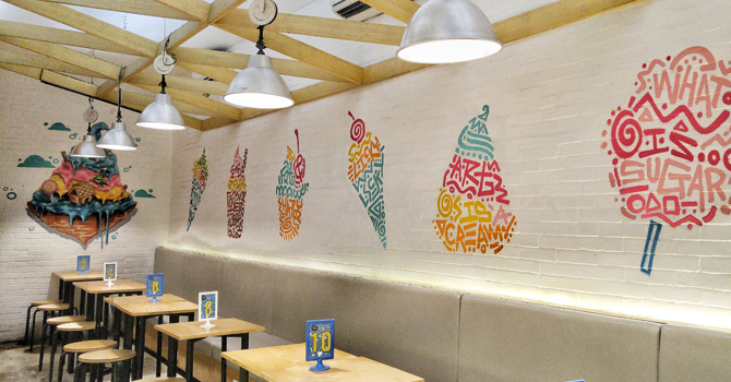Tempatnya pun didesain colourful dengan mural printing.