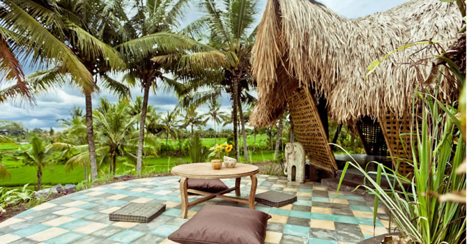 Meski berada di tengah sawah, letaknya tak jauh dari Pasar Ubud, sekitar lima menit dengan berkendara, sehingga Anda masih bisa mengajak keluarga menjelajahi Ubud dan berwisata kuliner dengan mudah. Saat pagi, ajak si kecil berolahraga dengan naik sepeda atau memanjakan mata melihat hijaunya sawah dan pohon kelapa yang ada di sekitar tenda.