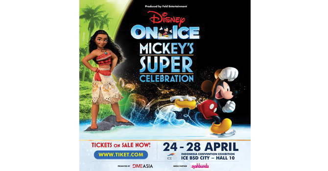 Untuk berbagi kebahagiaan di ulang tahun Mickey Mouse, tahun ini DME ASIA dengan bangga mempersembahkan Disney on Ice – Mickey’s Super Celebration, sebuah pertunjukan ice skating fantastis dan interaktif dengan menghadirkan Mickey Mouse dan 50 karakter Disney lainnya. Aksi lain yang tak kalah spesial, adalah penampilan Moana yang akan meluncur di atas es untuk pertama kalinya di Asia di Indonesia Convention and Exhibition (ICE) BSD City, 24-28 April 2019.
