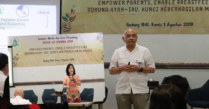 Terkait hal itu, Ikatan Dokter Anak Indonesia (IDAI) mengadakan seminar media bertema Empower Parents, Enable Breastfeeding – Dukung Ayah Ibu, Kunci Sukses Menyusui, pada 1 Agustus lalu, di Gedung IDAI. Ketua IDAI Dr. dr. Aman B. Pulungan, Sp.A(K), FAAP, FRCPI (Hon) menekankan pentingnya pemberian ASI eksklusif dan perlindungan pemerintah bagi ibu bekerja untuk bisa sukses memberikan ASI eksklusif. Sementara itu, dr. Elizabeth Yohmi, Sp.A, ketua Satgas ASI IDAI memaparkan pentingnya dukungan tenaga medis untuk orang tua agar sukses menyusui. Prof. Dr. Badriul Hegar, Sp.A(K), PhD menyampaikan materi bertema Breastfeeding for Gut Infant Health. Sesi tanya jawab ini dipandu oleh dr. IGAN Partiwi, Sp.A, MARS