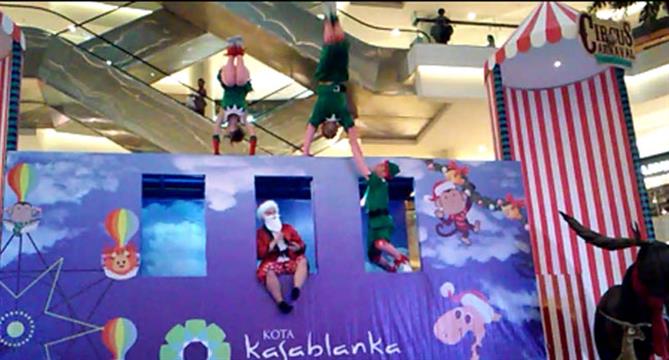 Menyaksikan hiburan natal yang disuguhkan untuk keluarga, jadi lebih seru dan pacu adrenalin saat melihat aksi akrobatik di Kota Kasablanka. Para pemain sirkus yang didatangkan dari Hungaria ini, menampilkan keahlian mereka yakni melompat-lompat di atas trampolin dan berjalan di dinding! Pengunjung yang ingin menyaksikan, bisa langsung datang ke Grand Atrium pada tanggal 19-28 Desember 2014. Bila ingin mendapat posisi strategis agar dapat melihat dari jarak dekat, Anda bisa berbelanja sebanyak Rp 500.000 untuk dapat menyaksikan live show di hari Senin-Jumat, dan Rp 1.000.000 saat akhir pekan. (FIN/DEW)