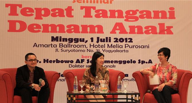 Bersama dokter spesialis anak dr. Herbowo AF Soetomenggolo, SpA(K), dr. Maria Melisa “Medical Marketing Manager GSK” dan Hanny Muchta Darta, seorang pakar Emotional Intellegent Parenting Consultant, pada minggu, 1 Juli 2012, di Hotel Melia Purosani Yogyakarta, bunda dan ayah mengikuti seminar Jumpa Pakar dalam tema bagaimana cara yang tepat dalam menghadapi demam anak.