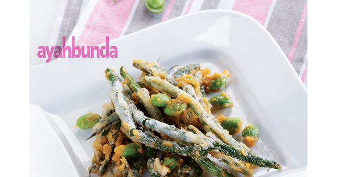 2. Masukkan buncis ke dalam celupan tepung, lalu gulingkan ke tepung sagu, goreng hingga matang. Sisihkan.