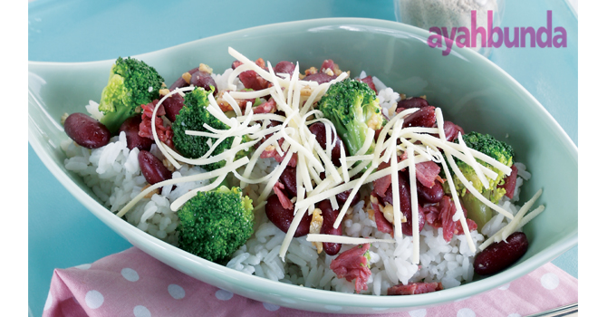 2. Tambahkan brokoli dan kacang merah, bumbui dengan lada dan garam. Masak hingga matang. Sisihkan.